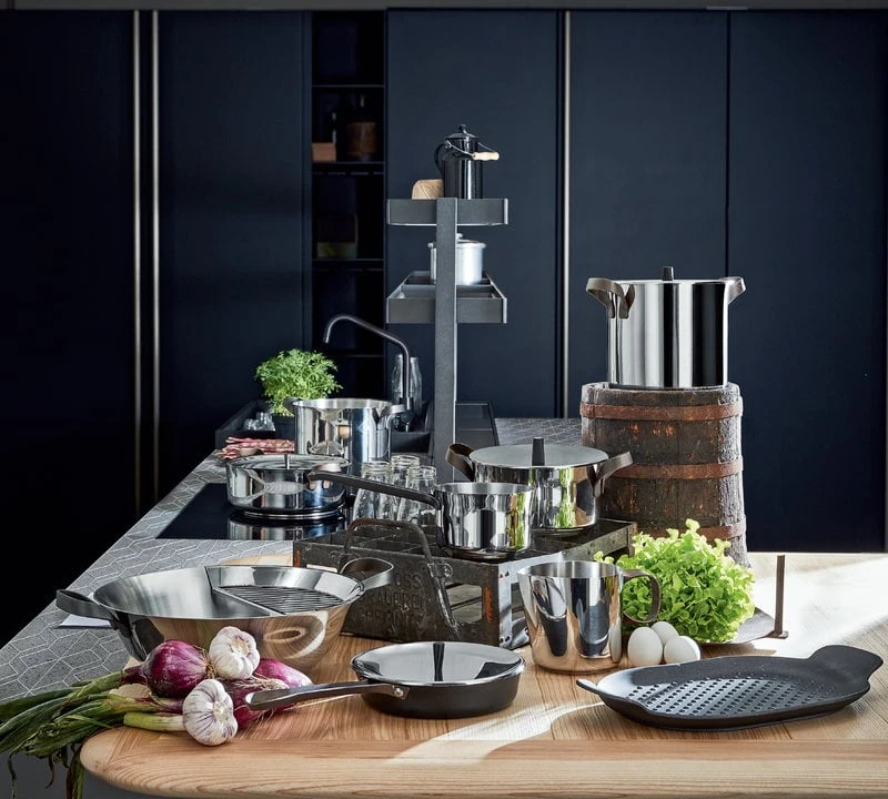 Alessi’s Edo collection got its name from two different directions: the name refers to the Latin word “edere”, ”to eat”, and Edo is also an ancient name of the city of Tokyo. Both Italian know-how and Japanese design influences are clearly visible in the smooth, seamless design and harmonious elegance of the collection. The most recognizable details of the Edo pots and pans are the brown, curved handles reminiscent of fabric ribbons. Edo range was created by the Spanish designer Patricia Urquiola.