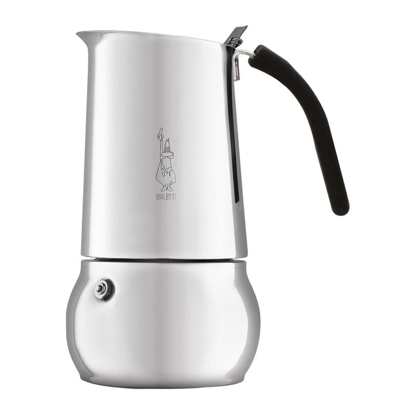 Bialetti’s Kitty espresso maker allows you to enjoy your coffee in an authentic Italian way. The Kitty coffee maker has an attractive, rounded design with a heat-resistant handle and dripless spout. Made of stainless steel, this stovetop espresso pot is suitable for all stovetops including induction.