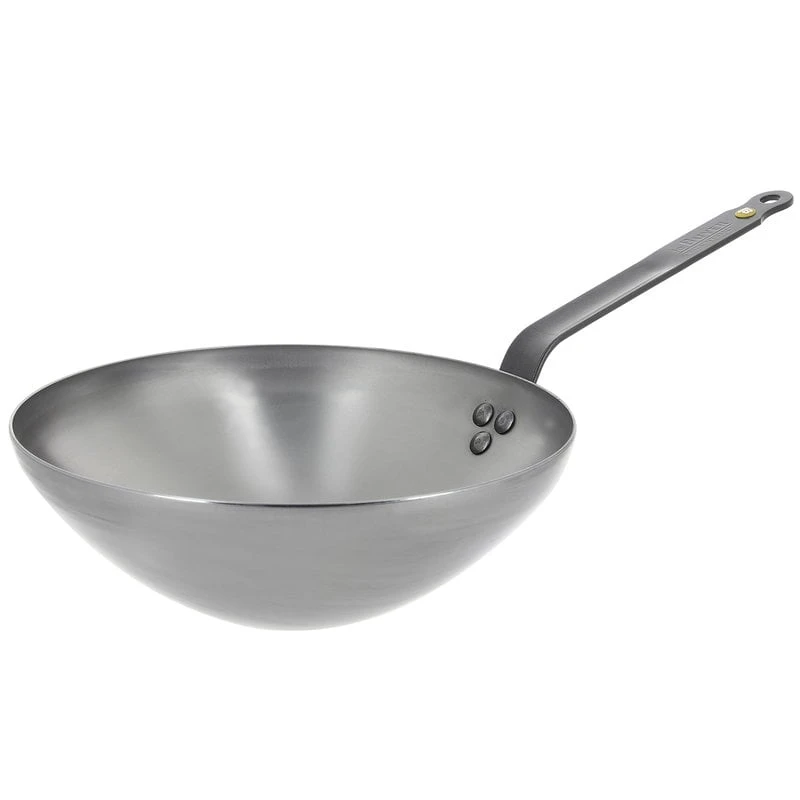 The robust and lightweight carbon steel pans can withstand high temperatures, are excellent for caramelizing food, and stay hot for long. When used regularly, the pan will turn darker and develop a natural non-stick surface – the blacker it gets, the less it sticks. You can also season the pan every now and then. Mineral B pans have been manufactured in France.