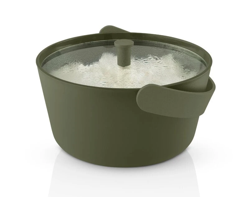 The Green Tool rice steamer by Eva Solo makes cooking rice, quinoa or grains incredibly easy: just put the rice, water and your preferred seasonings in the steamer, place the lid on top, and cook in the microwave for a few minutes. Finally, leave the rice to rest for about two minutes. Thanks to the minimalist design, the steamer doubles as a serving bowl.
