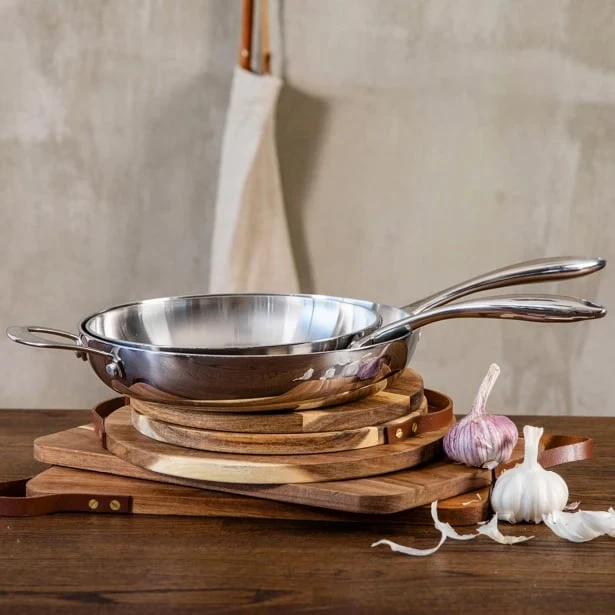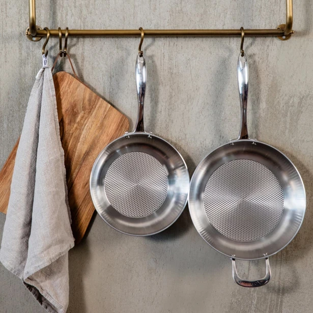 Heirol’s Allsafe frying pan is a very durable uncoated steel frying pan for frying and stewing. The five-layer structure of the pan ensures even and efficient heat distribution throughout the pan – the pan heats up quickly and energy-efficiently. The ergonomically shaped handle facilitates easy handling of the steel pan.