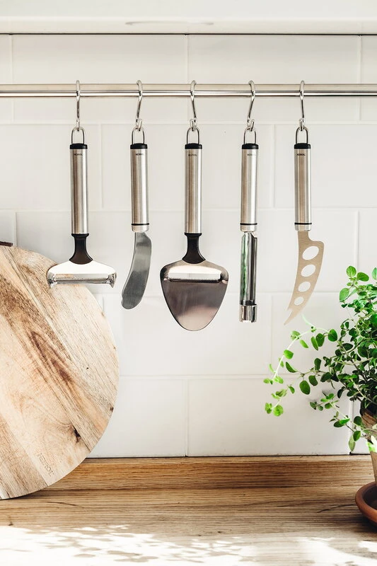 Heirol’s Steely cheese slicer is a handy helper for cutting even and thin slices of cheese. The serrated blade makes it easy to slice even harder cheeses. The traditional cheese slicer is made of high-quality stainless steel and its handle is filled with plastic to prevent dirt or water from entering the handle. The durable and hygienic Steely cheese slicer is easy to clean in the dishwasher.