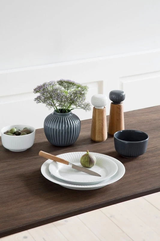 Hammershøi grinder, designed by Hans-Christian Bauer for Kähler, is part of a beautiful ceramic collection named after artist and ceramicist Svend Hammershøi. He worked for Kähler from 1893 until his death, and his large vases and bowls were often adorned with simple vertical furrows. The same decorative pattern repeats in the timeless Hammershøi collection that is perfect for both everyday use and festive settings.