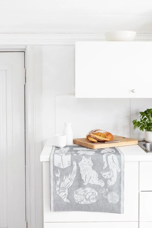 The Kissanpäivät hand towel by Lapuan Kankurit features charming and beautiful cats which are created by illustrator Matti Pikkujämsä. Made from a linen-cotton blend, the shades of the towel are delightfully cosy. The cute cat pattern is mirrored on the other in opposite colours. The materials for the Kissanpäivät towel are from Europe, mainly from Finland. The hand towel is sewn in a sewing factory in Lithuania or in Finland at the own weaving mill of Lapuan Kankurit.