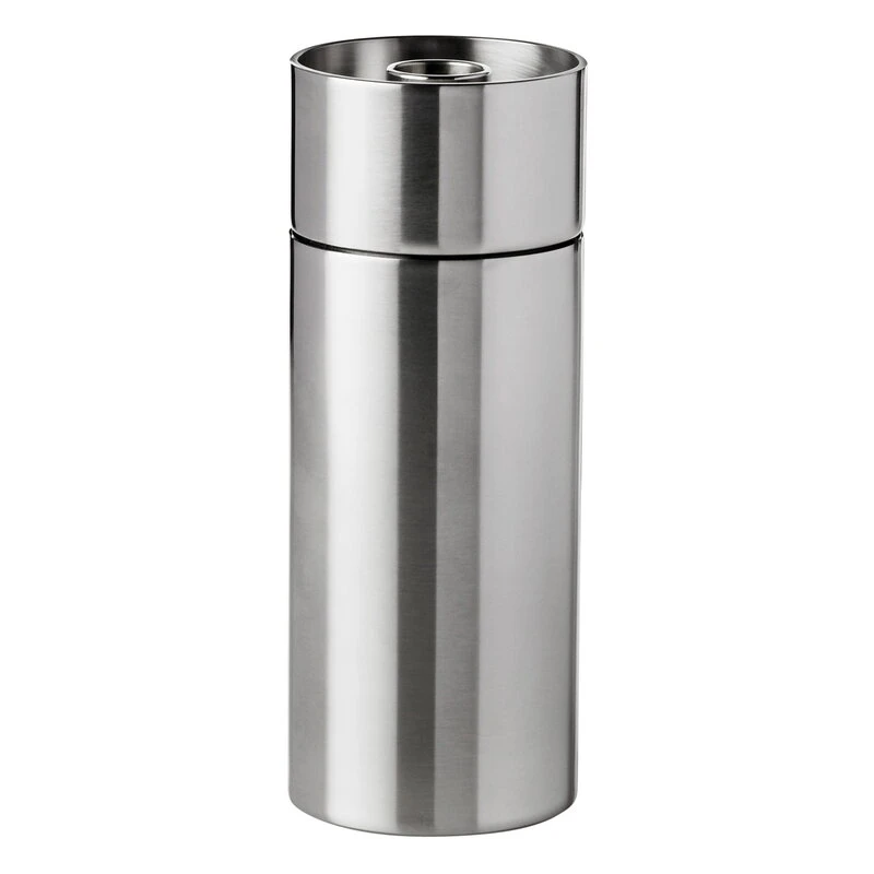 The Arne Jacobsen salt mill by Stelton is part of the Cylinda Line hollowware range from 1967. Made of stainless steel, the salt mill features an adjustable ceramic ChrushGrind mechanism, a satin-finish surface and a comfortable grip.